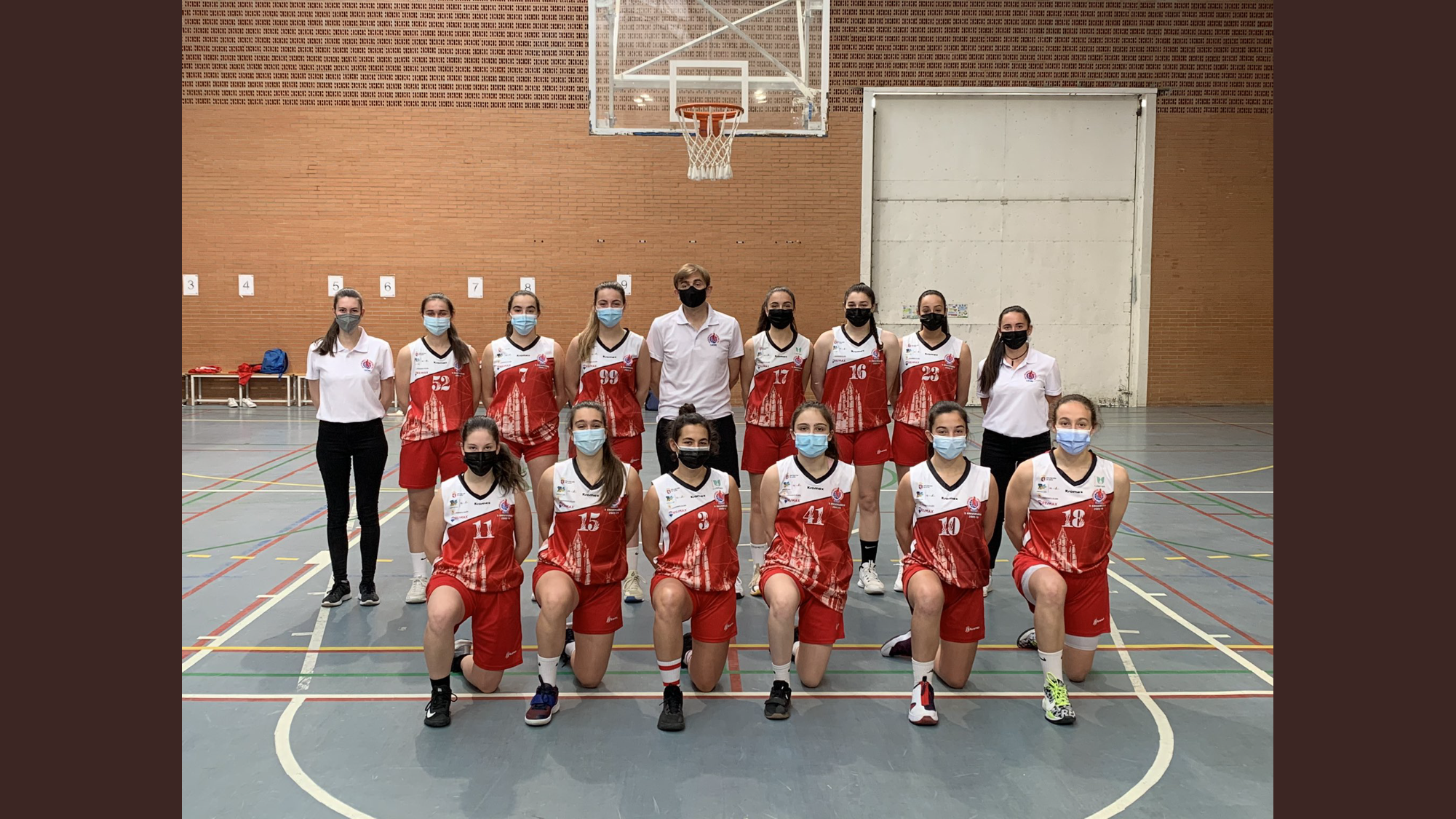5) EMMA FLÓREZ; 6) JULIA MARTÍNEZ; 7) JENNIFER GIGANTO; 9) DÉBORA GONZÁLEZ; 9) CRISTINA CONDE; 10) ANDREA MURGUÍA; 11) SARA BRANDY; 12) LAURA GONZÁLEZ; 13) MARÍA DIEZ; 14) LUCÍA GARCÍA; 15) MARINA FERNÁNDEZ; 17) NURIA ORDÁS; 18) ALICIA FLÓREZ. Además entrenando con ellas y en dinámica de equipo tenemos a la cadete EMMA ROMERA y a la junior MARTA MUÑOZ.