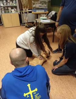 El Club se preocupa por la formación integral de sus jugadoras. Para ello, resulta imprescindible que sus entrenadores tengan igualmente la mejor formación. Por eso, intentando subir un peldaño más, BALONCESTO FEMENINO LEÓN organiza una serie de conferencias a cargo de prestigiosos entrenadores que nos ayudan a conocer diferentes formas de ver y practicar el baloncesto. Y dentro de ese programa formativo, se incluyen labores de enseñanza de primeros auxilios como los que muestra la foto, a cargo de la doctora del Club, Elvira Espeso, y de nuestro enfermero pediátrico y profesor universitario, Javier Pérez Rivera.